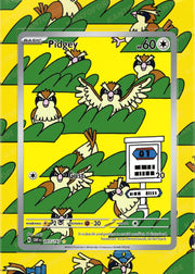 The Pidgey card, numbered 207/197, is an Illustration Rare from the Pokémon Scarlet & Violet—Obsidian Flames set. This card showcases Pidgey in a vibrant, full-art illustration, capturing its charming and playful nature.