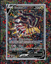 The Giratina V card, numbered 186/196, is an Alternate Full Art Ultra Rare from the Sword & Shield—Lost Origin expansion set. This card features a striking illustration of Giratina emerging from a distorted realm, emphasizing its connection to the Distortion World.
