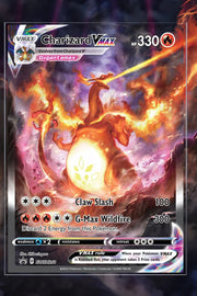 The Charizard VMAX card, numbered SWSH261, is a Black Star Promo from the Sword & Shield series. This card features an alternate art illustration of Charizard in its Gigantamax form, showcasing its formidable presence.